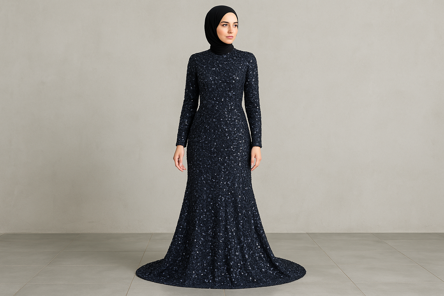 Gece şıklığınızı tamamlayacak Gece Işıltısı Payetli Tesettür Abiye, modern kesimi ve tamamen payet işlemeli kumaşıyla dikkat çekiyor. Tam boy tasarımı ve rahat kalıbı sayesinde hem konforlu hem de zarif bir kullanım sunar. Düğün, nişan, mezuniyet ve tüm özel davetlerde şıklığınızı ön plana çıkaracak bu abiye, lacivert rengin asaletiyle birleşerek ışıltınızı yansıtıyor.